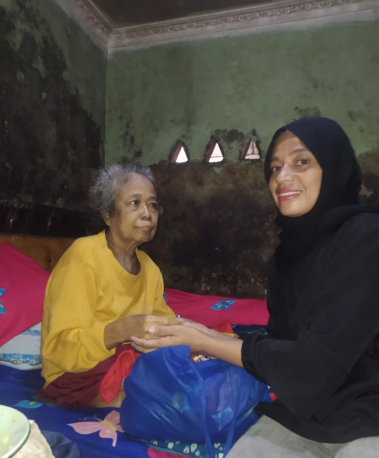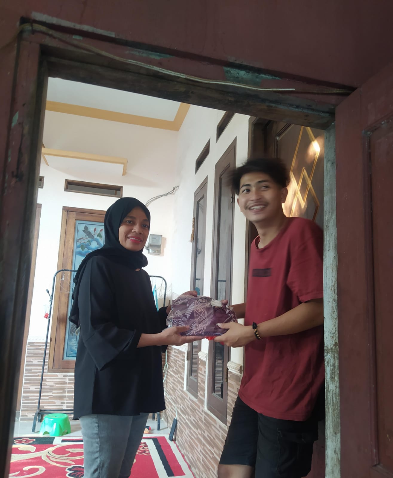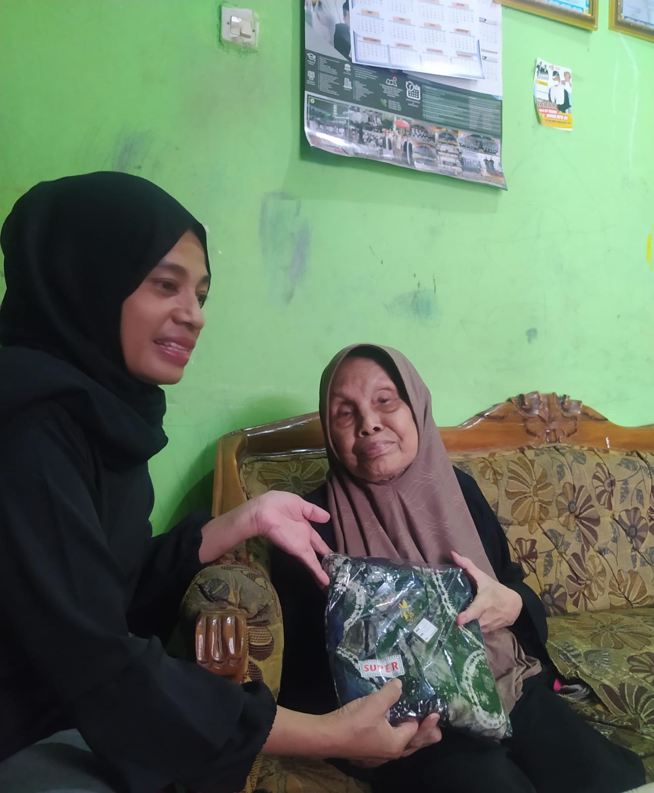 Pembagian santunan oleh Bendahara Yayasan Ibu Hj. Nurhayati.