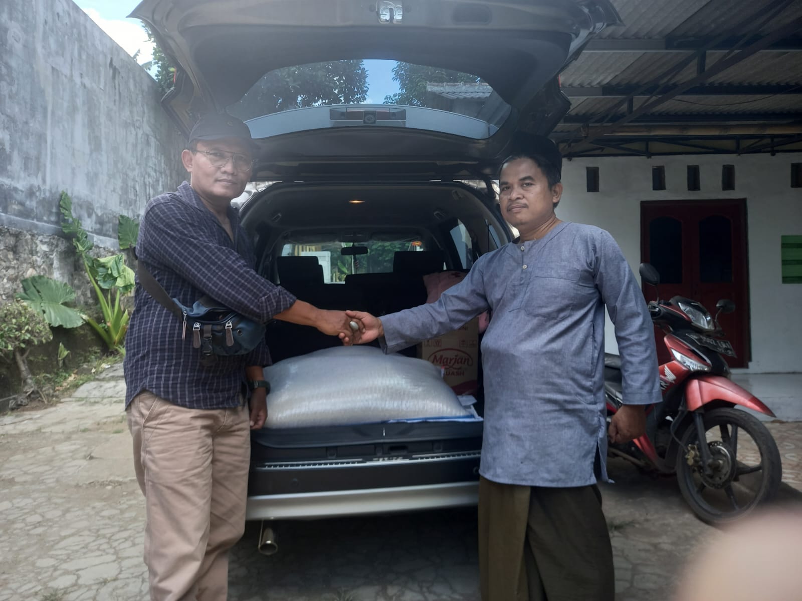 Pemberian zakat fitrah Ramadhan 1444 H ke ustadz Wiryo, pengurus Musholah Baiturahmah.