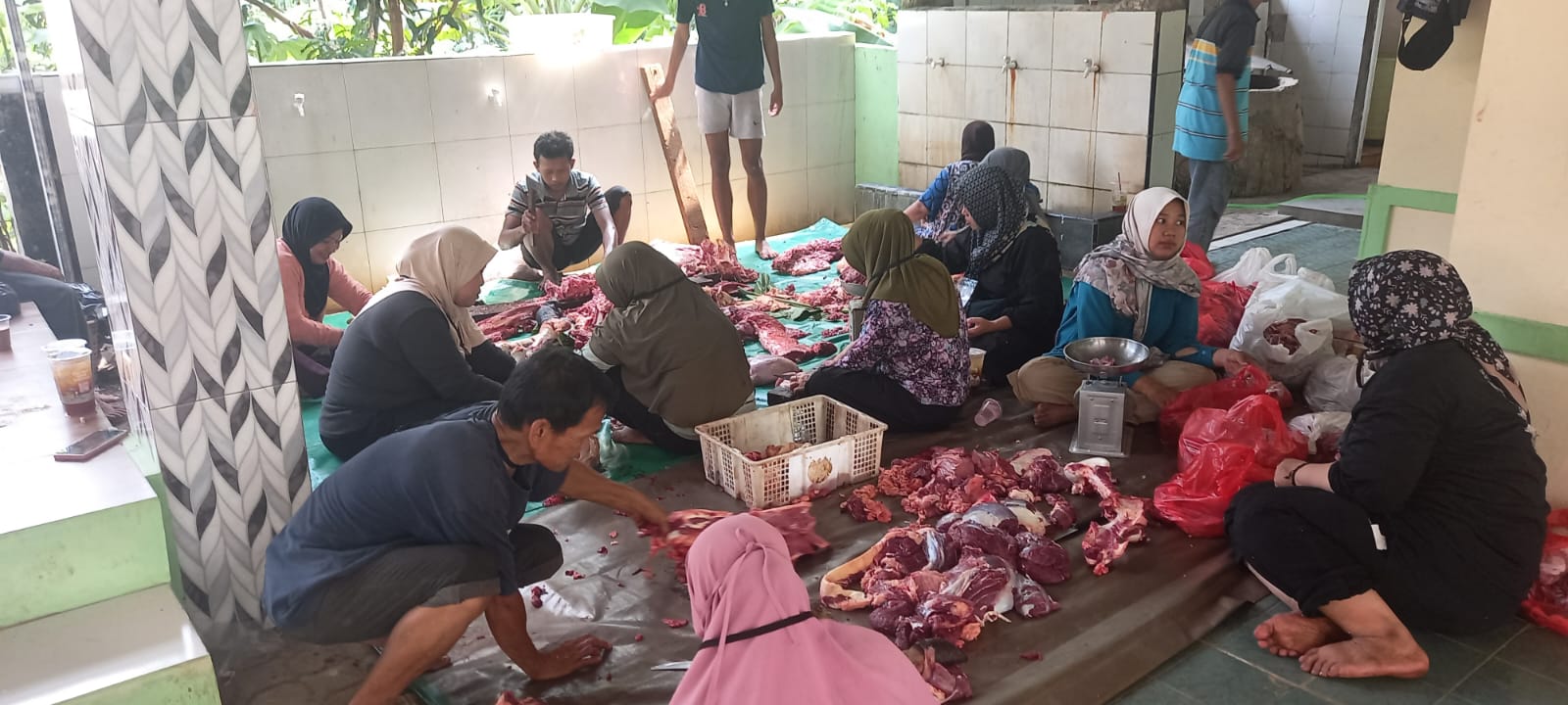 Berbagi 350 paket daging kurban kepada santri, jamaah dan warga sekitar pada Hari Raya Idul Adha 1446 H