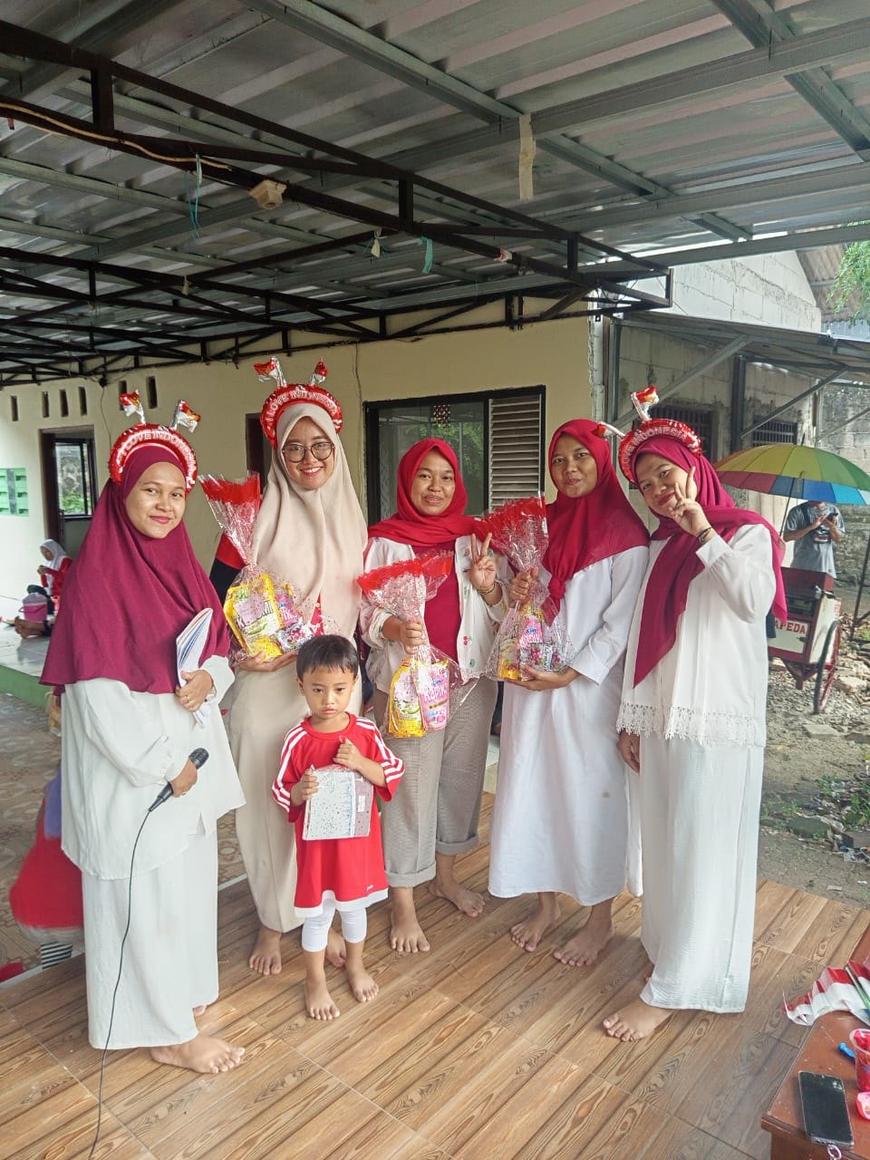 Suasana memeriahkan HUT Kemerdekaan RI ke 80 17 Agustus 2025 oleh santri, wali santri dan guru di TPQ & PAUD Ainul Yaqin di Mushola Baiturahmah, Limo, Depok